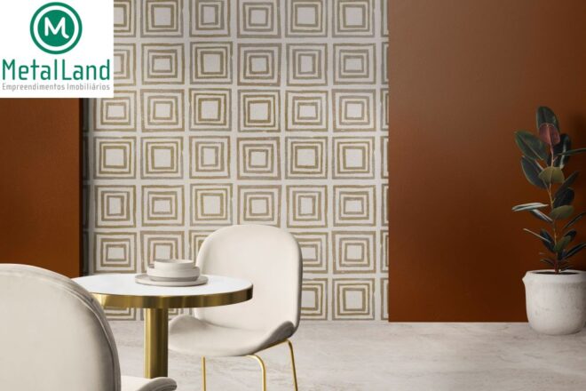 As formas também funcionam quando a decoração é mais simples ou o orçamento menor, criando um ponto focal atrás do móvel da televisão ou do sofá, por exemplo.