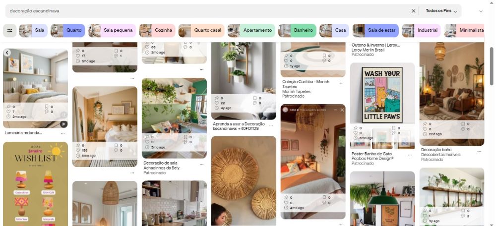 A plataforma ainda permite personalizar as buscas, usando filtros para diferentes cômodos, por exemplo. Com tantas opções, fica mais fácil identificar quais características do estilo de decoração são mais interessantes e, a partir daí, recriar em casa.
